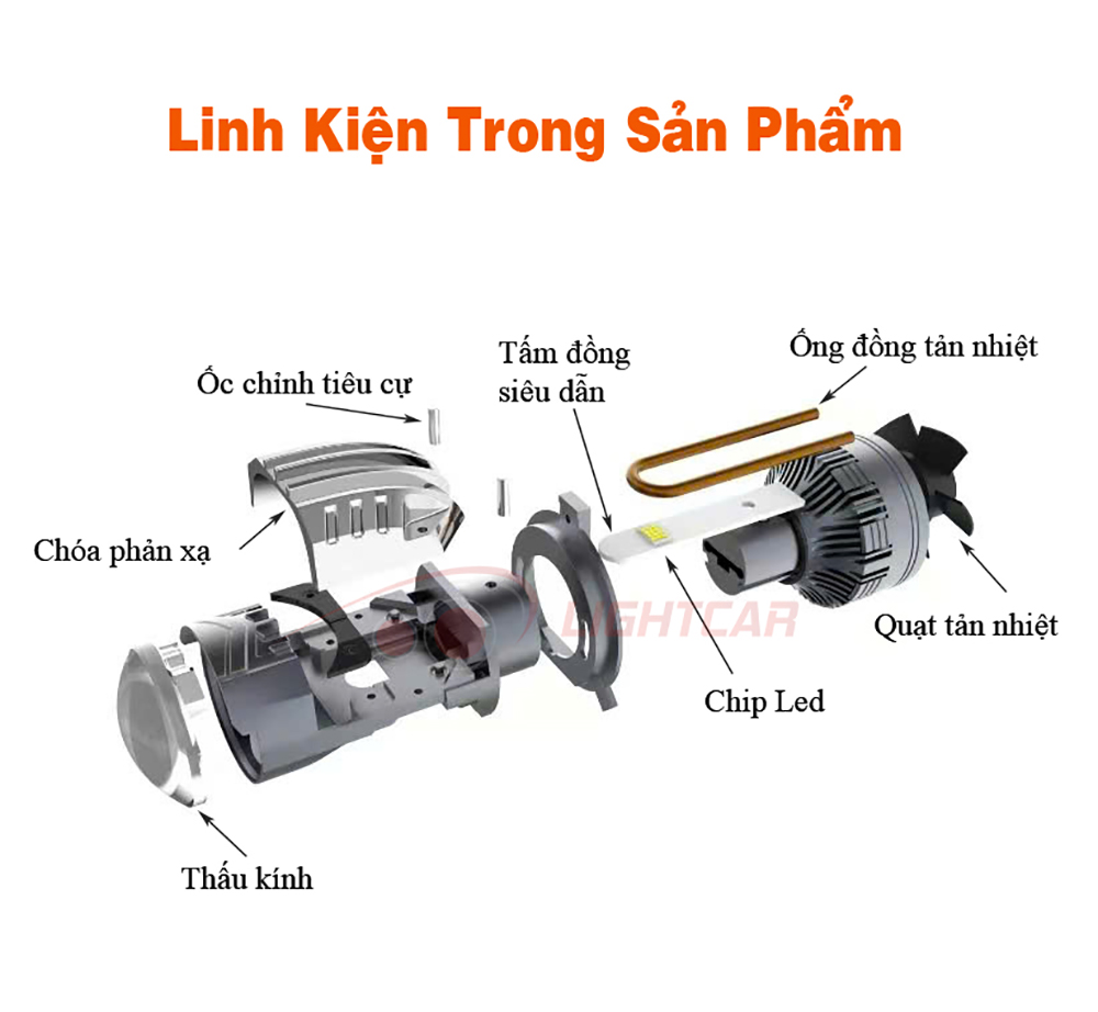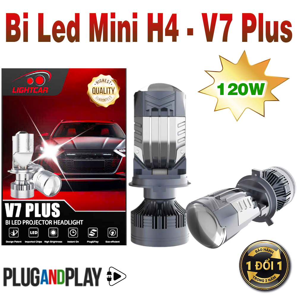 Bi Led Mini H4 LightCar V7 Plus 120W , Siêu Sáng Cho Xe Con 12V Và Xe Tải 24V