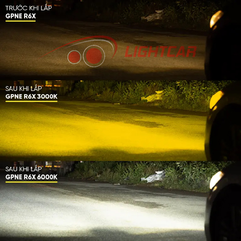 Cụ thể: Với công nghệ Chip độc quyền và số lượng nhân LED lớn, GPNE R6X giúp đèn xe chỉ tiêu thụ ở mức điện năng thấp 40W nhưng cho ra quang thông lên đến 12.000Lm, tăng sáng gấp hơn 500% so với đèn Halogen nguyên bản. Ánh sáng tỏa ra từ GPNE R6X vô cùng mạnh mẽ và rõ ràng, điều này làm cải thiện khả năng quan sát của người lái khi di chuyển vào ban đêm hay các điều kiện thiếu sáng khác.
