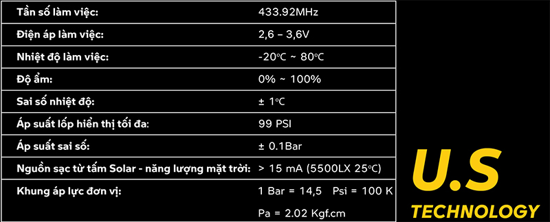 Tính năng của Cảm biến áp suất lốp Steelmate MT-11