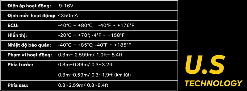 - Bộ cảm biến Steelmate 8 mắt có thông số kỹ thuật như sau: